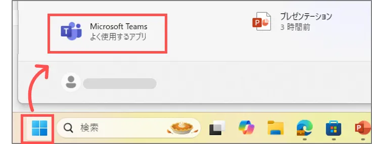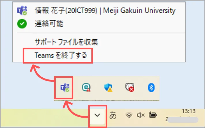 1.タスクバーに隠れているTeamsを終了します