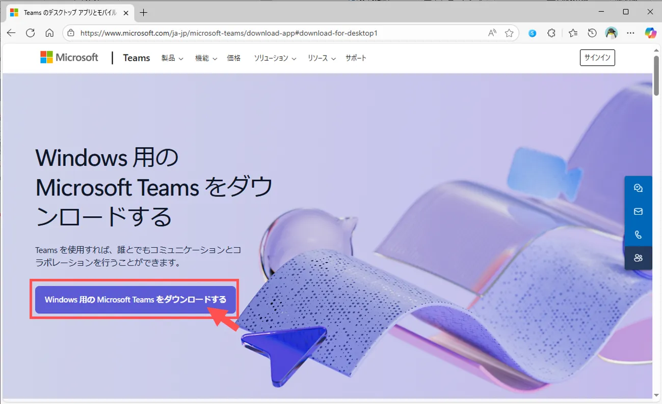 3.「●●用の Teams をダウンロードする」をクリック