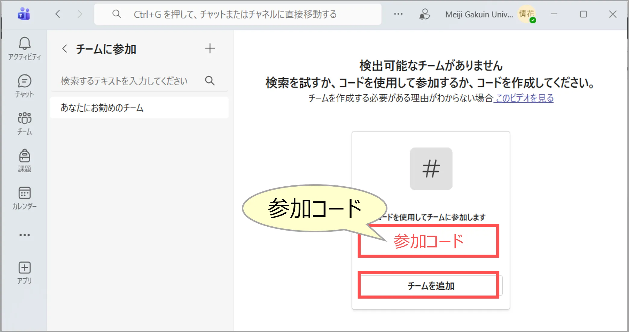 - この手順は、教員がチームコードを作成した場合のみ実行できます。