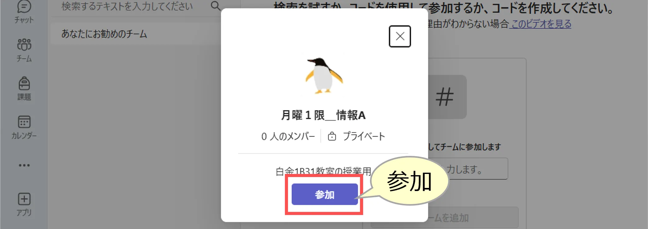 4.「チームに参加」をクリック