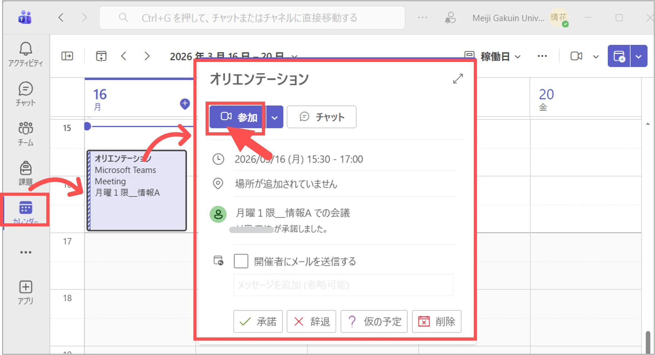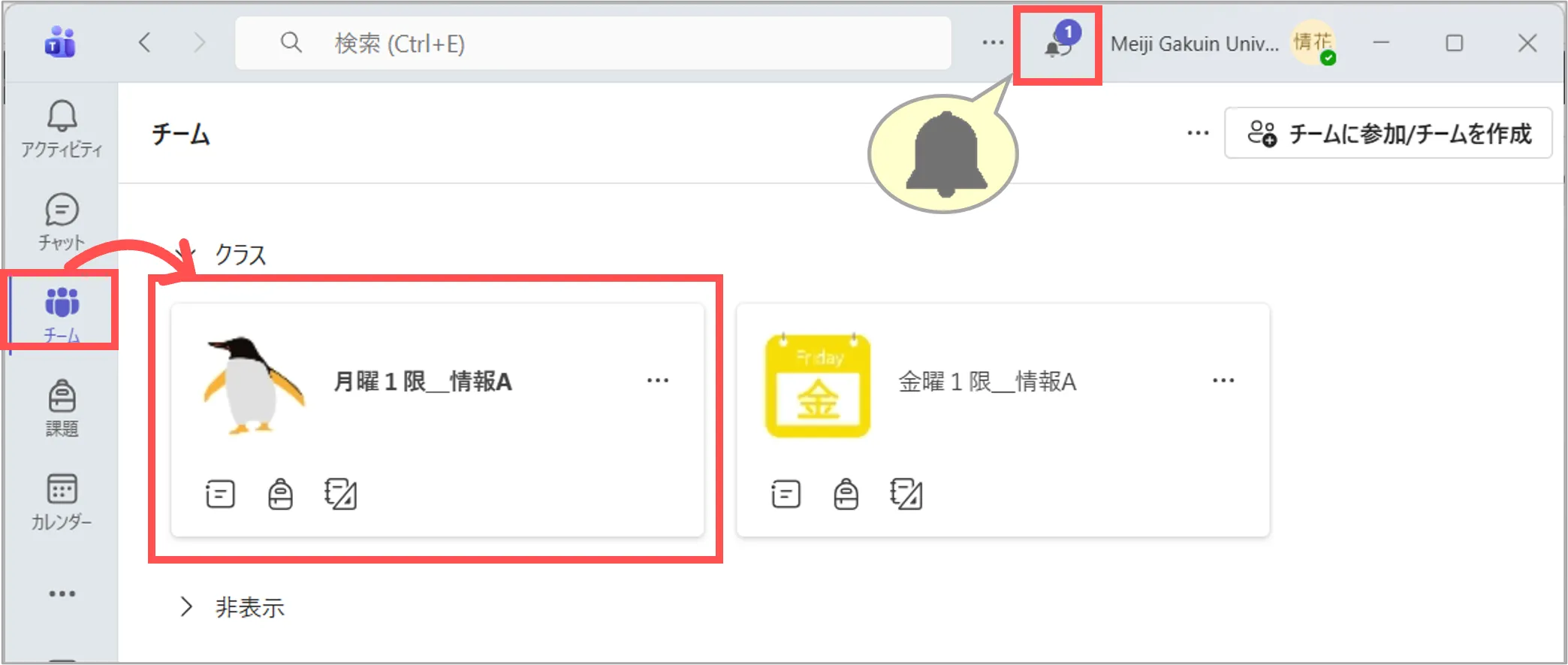 2.チームにスケジュールされた会議(授業)は、
