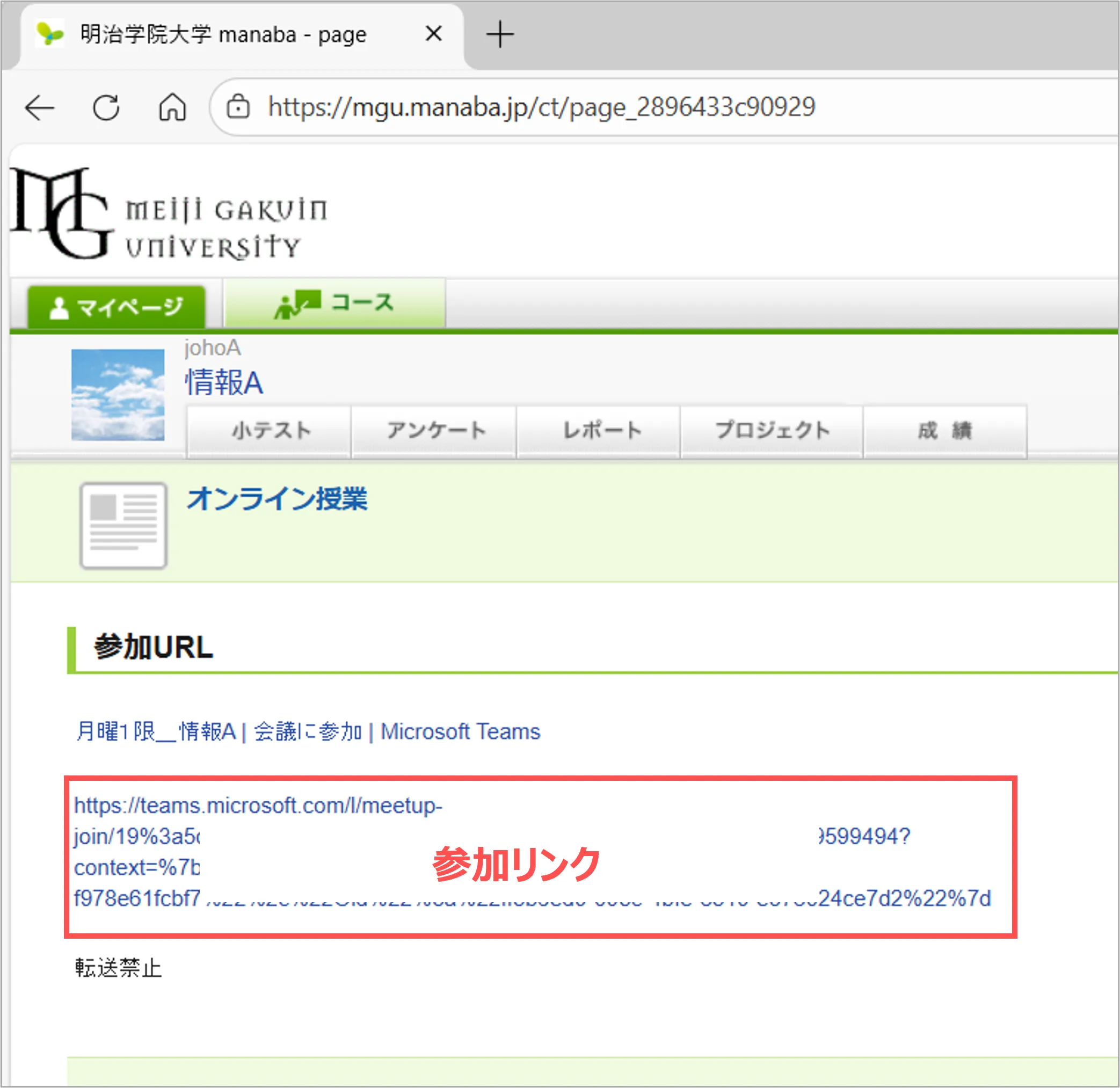 - 基本的にmanaba等に記載された会議リンク(URL)をクリックして、会議(授業)に参加します。