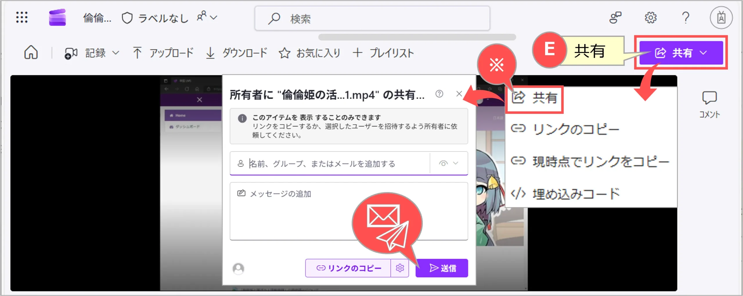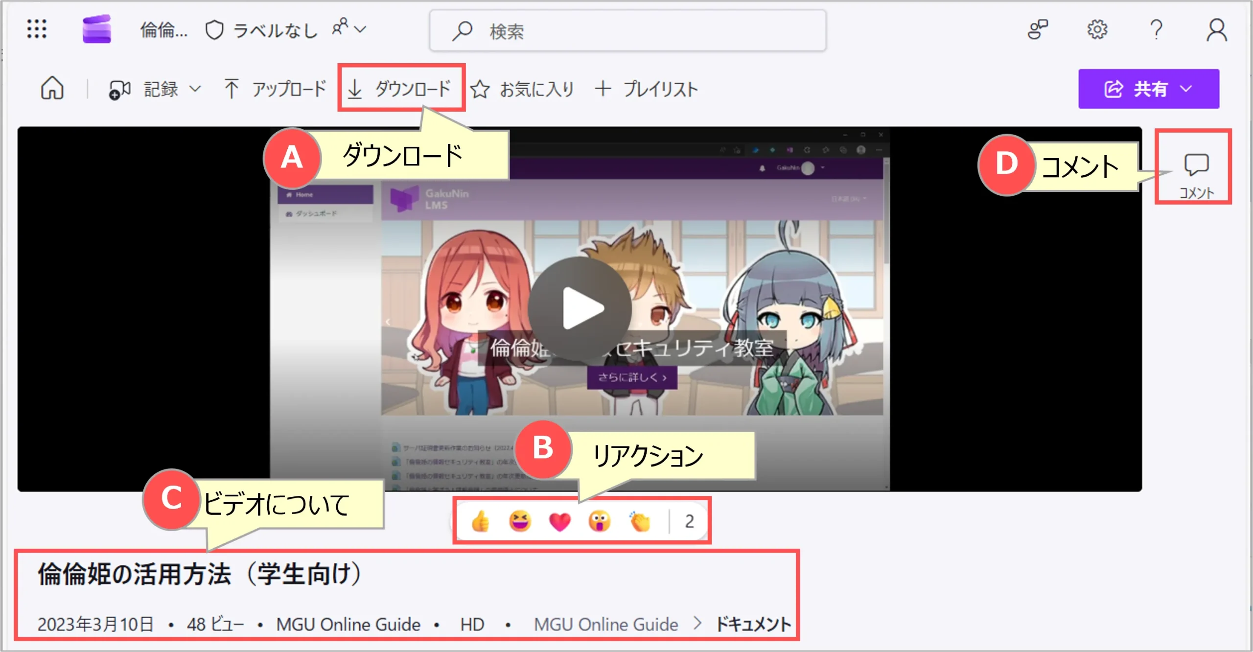 個人の OneDrive(またはSharePoint)上の動画を再生・管理することができます。