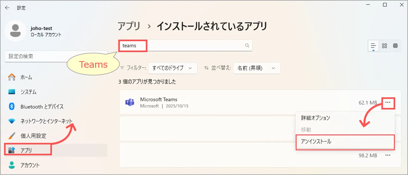 - 「アンインストール」をクリック