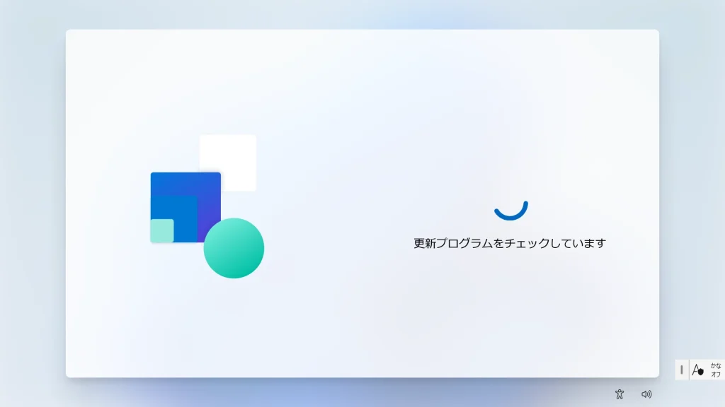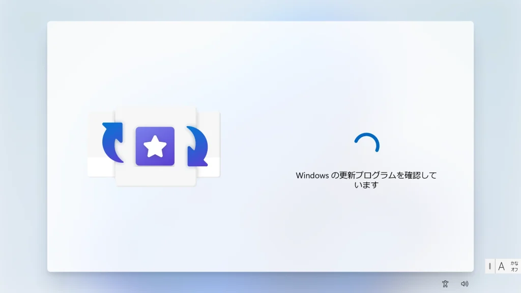 再起動後、最新の機能とセキュリティ更新プログラムのチェックが行われます。