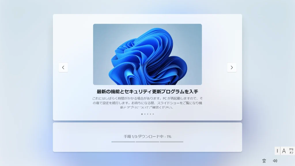 • 重要: ダウンロード完了後、最新状態を適用するために再度の再起動が発生します。 画面の指示に従い、電源を切らずにお待ちください。