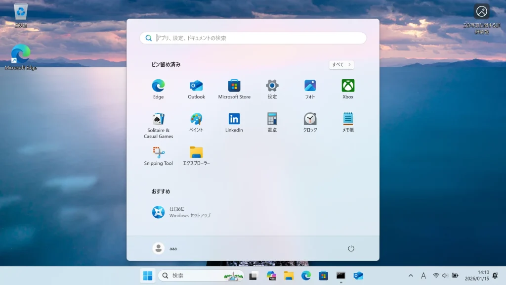 すべての設定が完了すると、デスクトップ画面が起動します。