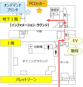 ※パレットゾーン奥の階段から地下1階に降りる