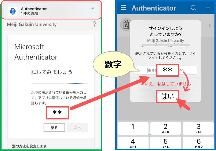 • 【Authenticator】が通知を表示します