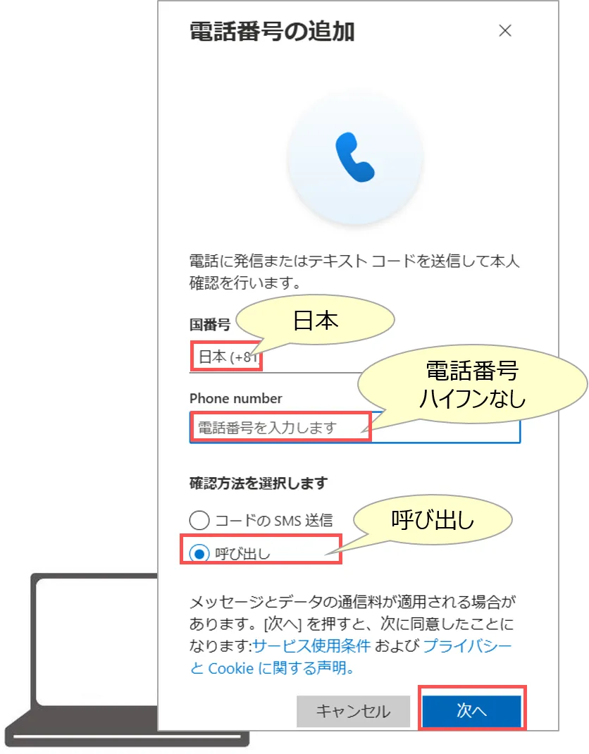 パソコンと電話を使用して【電話認証】(音声)を設定するマニュアルです
