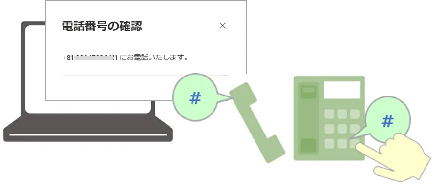 - 「こちらはMicrosoftです。サインインしようとしましたか?サインインする場合は、「#キー」を押してください。」