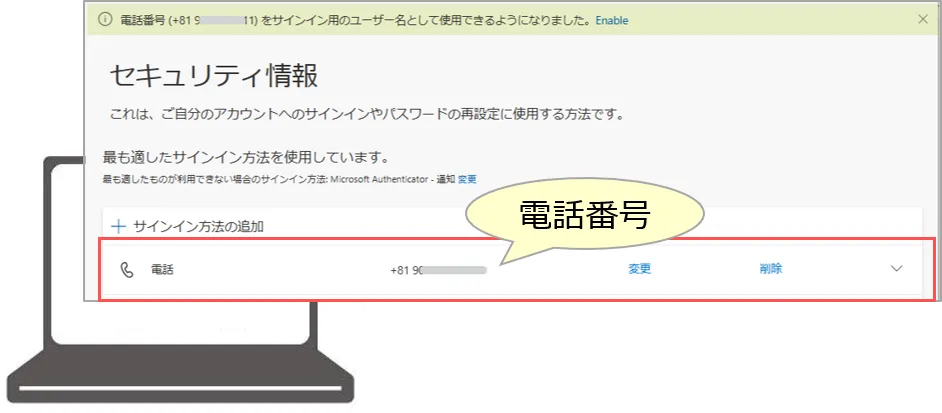 - 「セキュリティ情報」(https://mysignins.microsoft.com/security-info)にアクセスします